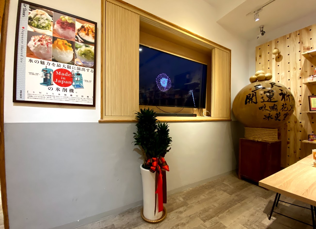 假日休閒聊天好去處,環境簡潔還有好吃的日式鵝絨挫冰,另外煙火影片秀哦!