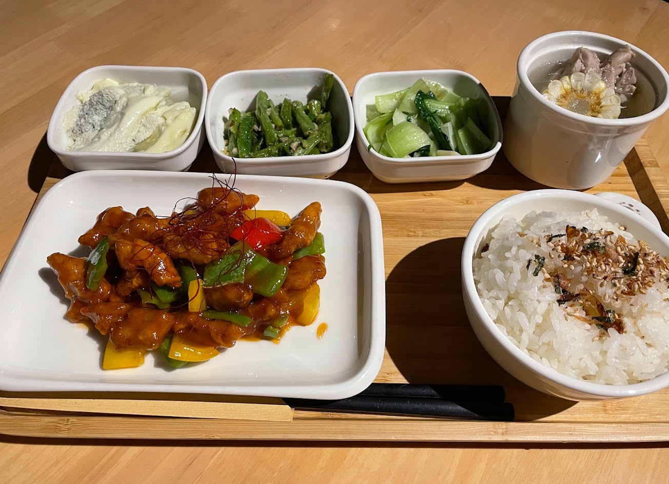 2022.6.18週六17:30-21:00晚餐內用。到店時還很明亮,晚上就變夜景迷人了。點了套餐糖醋肉跟宮保雞丁,這2款簡餐好吃。