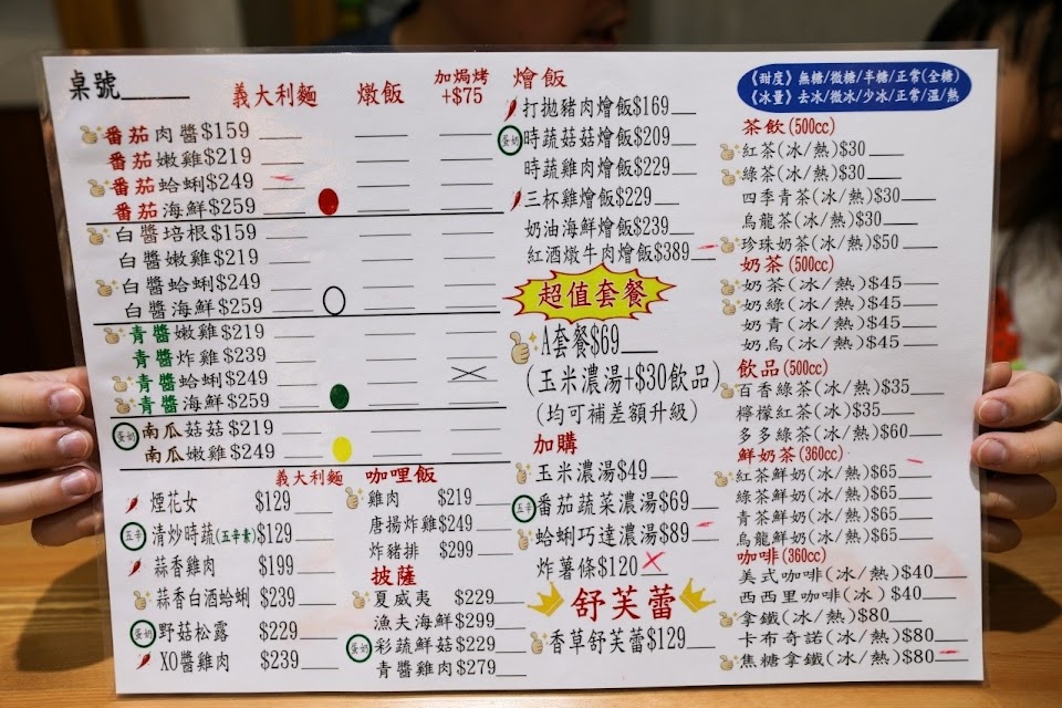 主打義大利麵、燉飯,還有奶香超濃?的舒芙蕾。但超可惜,因為最近人手不足,所以舒芙蕾供應不穩定,如果真的想吃,可以電話☎️詢問當天是否有供應。