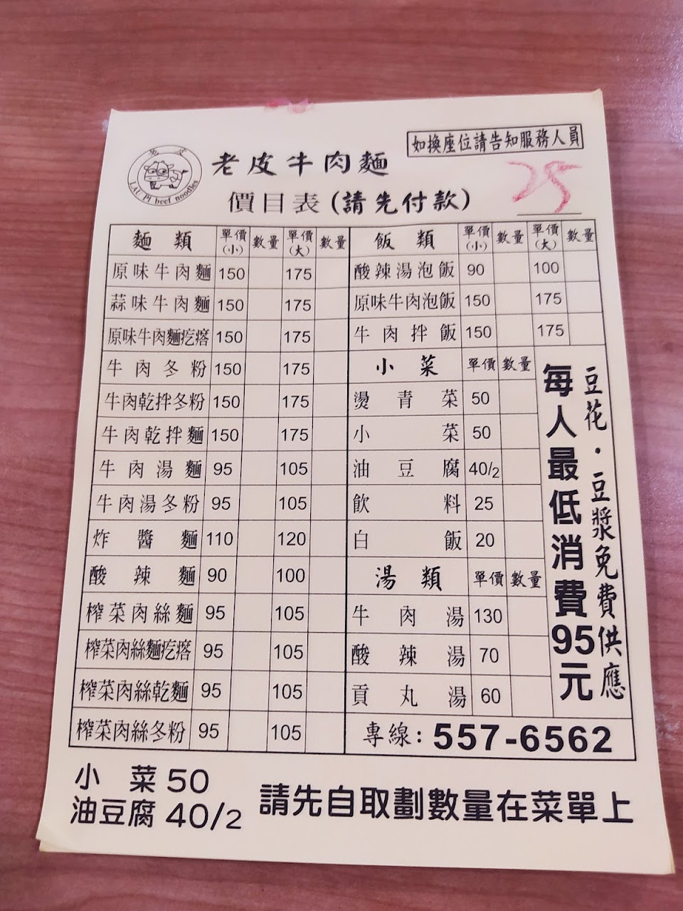 雖說豆花免費,但是一碗小的牛肉湯麵賣95,其實也就是變相的將豆花的價格灌在麵價裡面,cp值真的不高,更別提店內小蒼蠅超多,地板油油的,說真的不推薦來