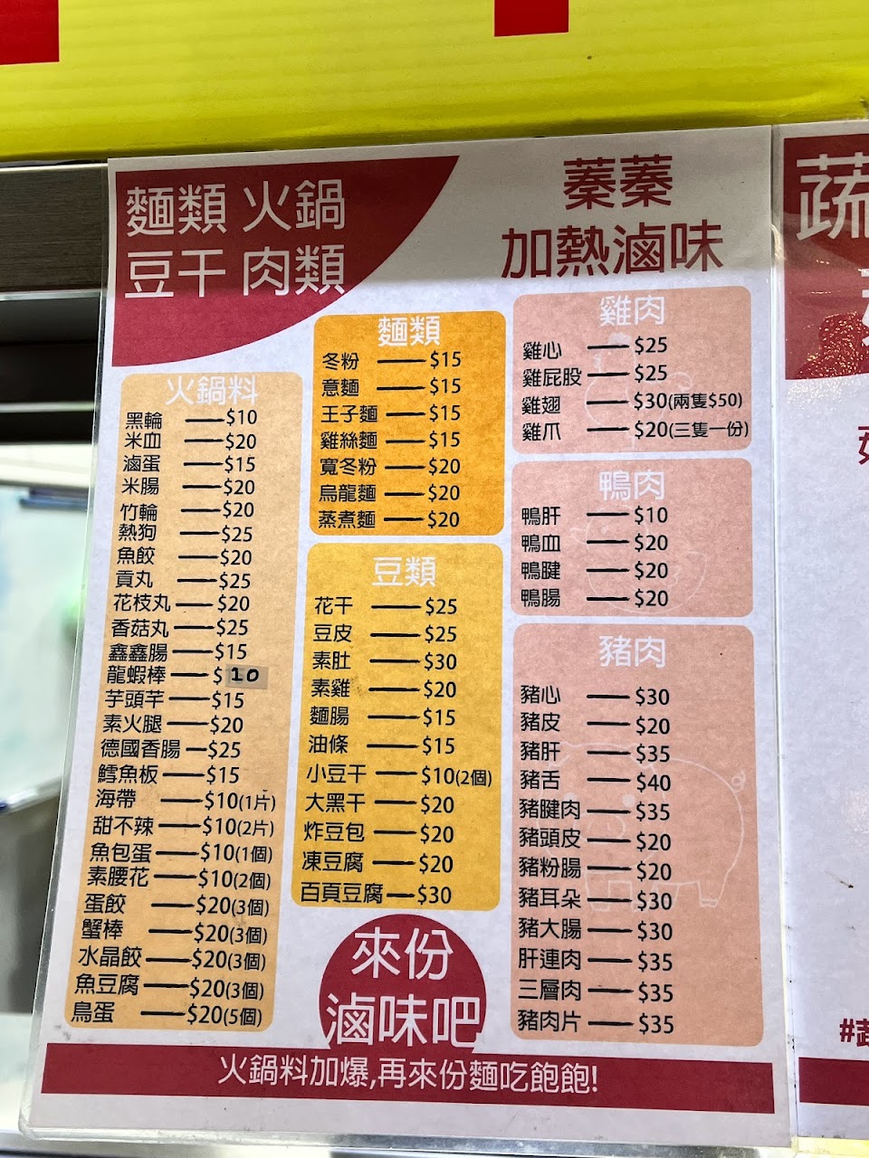 老闆人非常非常好且非常親切,對於餐點跟價格都會解釋地非常詳細,是否加辣加蔥蒜也都會向顧客細心地詢問,並仔細地核對點餐品項和價格,確保客人的餐點及付款情況無誤。 滷味的味道很讚且價格公道,在北部算CP值很高! 推薦大腸、粉腸、腱子肉跟蔬菜類 等搭配,食量較大的人如果怕吃不飽的話可以選擇再加各種麵類來增量,這樣營養且有飽足感又相當地好吃。 滷味的湯底不會過鹹或是過淡且味道很夠,搭配適量的配菜跟一點小辣會更添風味。 營業時間到蠻晚的,整體來說是宵夜的好選擇