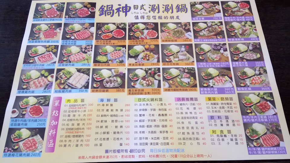 2024最新在地推薦餐廳的菜單_湖口鍋神日式涮涮鍋的菜單、圖片