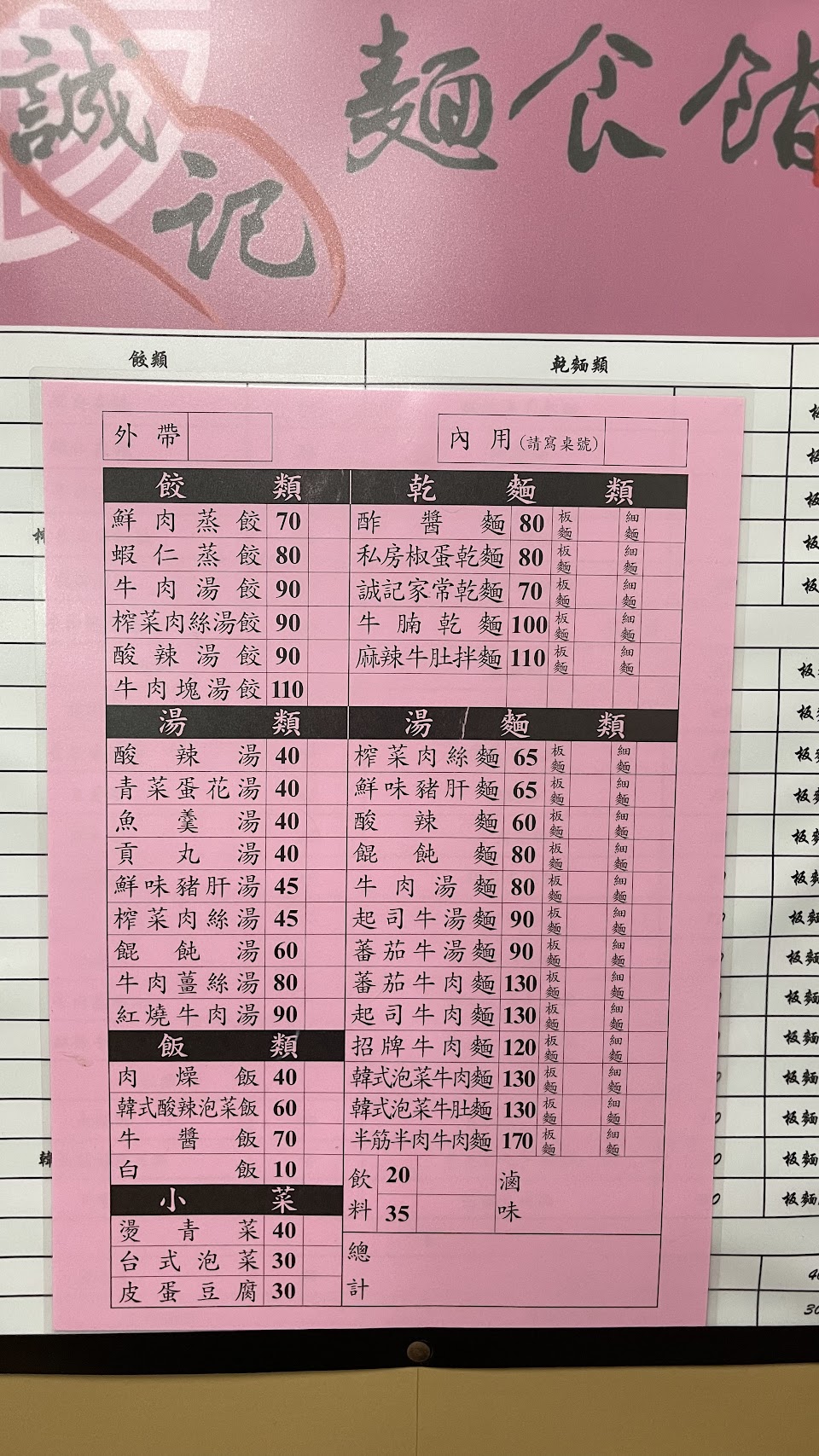 2024最新在地推薦餐廳的菜單_誠記麵食館的菜單、圖片