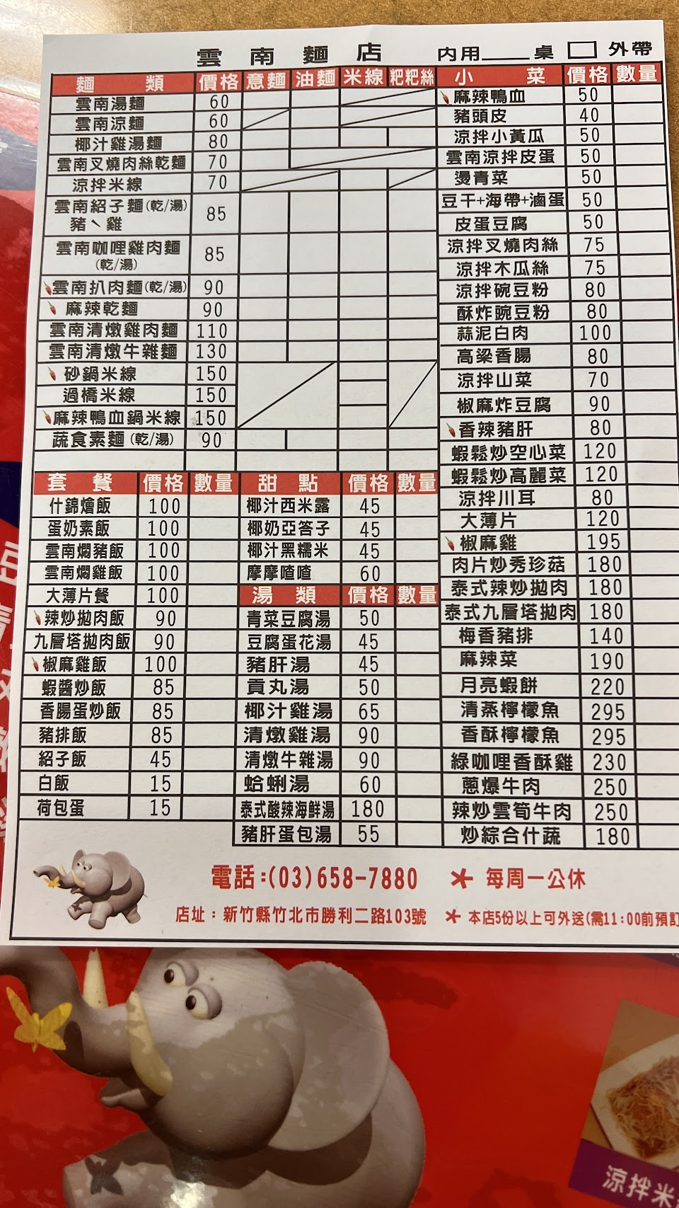 2024最新在地推薦餐廳的菜單_雲南麵店的菜單、圖片