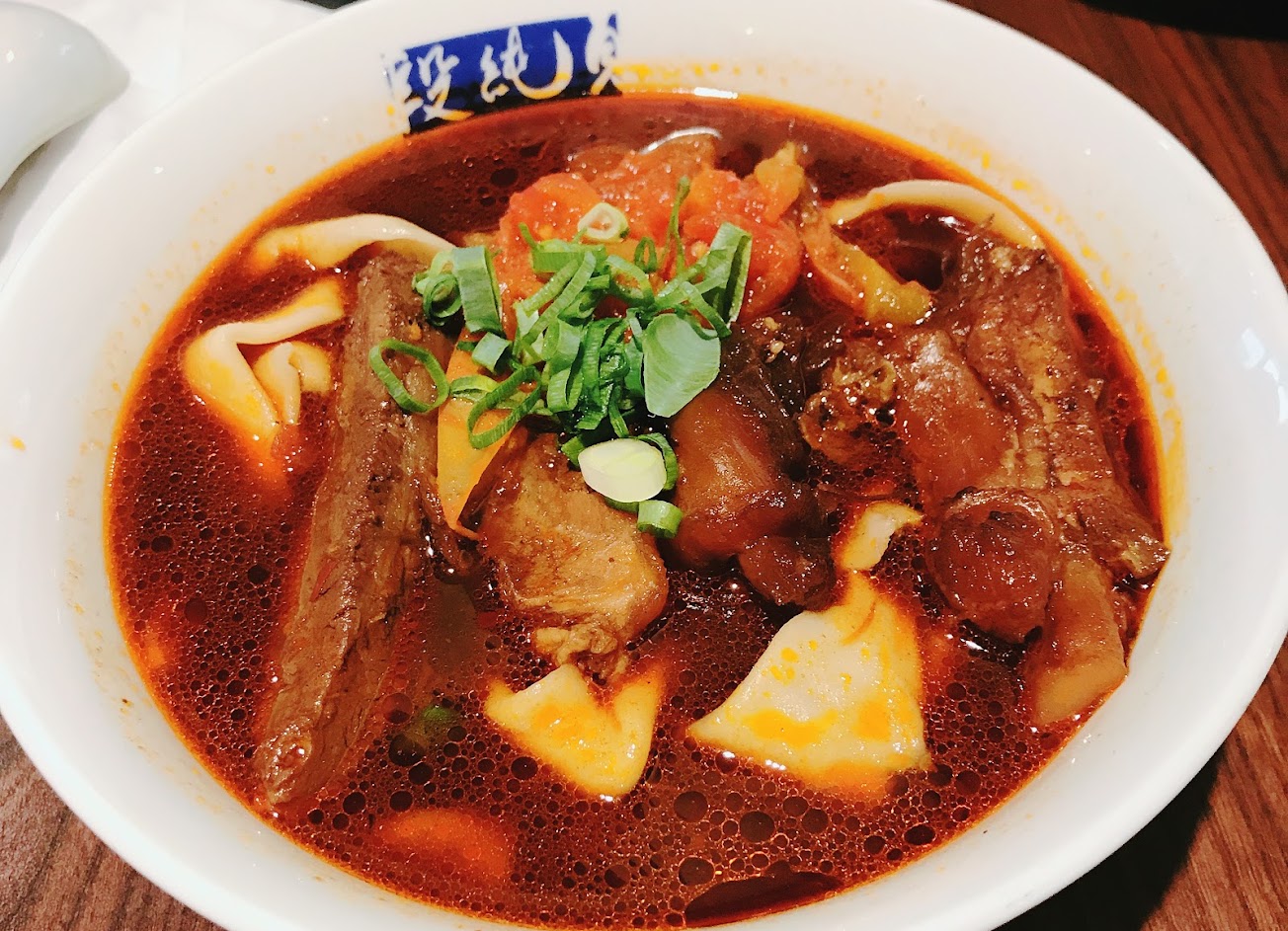 . 台灣 段純貞牛肉麵 老火鍋牛肉麵 . ?價格:160元 ?交通:其實台北有分店,但是剛好路過竹北停留下來吃了一頓,如果沒有自備交通工具會有點難來到這裡,所以基本上還是要開車來比較方便。 ?店舖:店面是一整棟的,位子非常多,通常用餐時間還是需要排隊,體環境非常舒服,點菜動線也很明確。 ?湯頭:老火鍋牛肉麵顧名思義就是四川麻辣味湯頭的意思,我想外面應該很難有第二間一樣味道的店面,對於又麻又辣的牛肉麵其實我很難抗拒,湯頭喝起來的感覺,麻大於辣,但是辣的尾勁也是有的,好喝,不過照片上面看起來實在是紅透了。 ?麵食:麵食可以選擇細麵與手工麵,我點了手工麵,好吃,份量夠,有點彈牙,而且麵本人都很大片。 ?肉肉:肉肉全瘦,無筋,超軟嫩,好吃,燉到底了,如果喜歡吃有嚼勁的可能會不喜歡