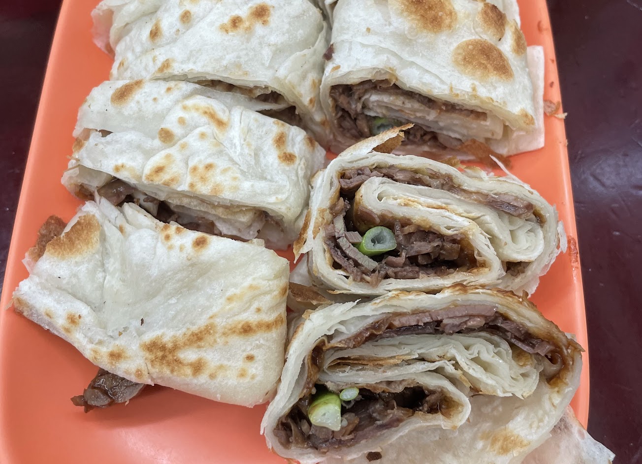 「捲餅」我個人很推薦這一道,但是他的牛肉並沒有到特別好吃,而且對我來說比較硬一點,但是這家很利害的是,他的肉比較硬,但是放在他q彈的餅皮中,咬起來真的很爽口,我仔細想想,他如果用那種很軟的肉,到時候會變成只在咬餅皮沒有肉的感覺,所以我覺得這個是經過設計的,因此給過!!他的捲餅還有一個我覺得很棒的特色,他的餅皮有點像是千層的那種口感,目前我還沒吃到捲餅有那麼好的口感,大部分吃起來都像是蔥抓餅或是蛋餅的那種口感而已!