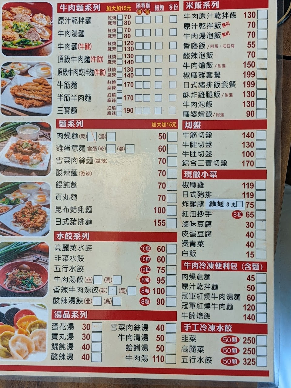 五行水餃 冠軍紅燒牛肉麵 日式豬排飯