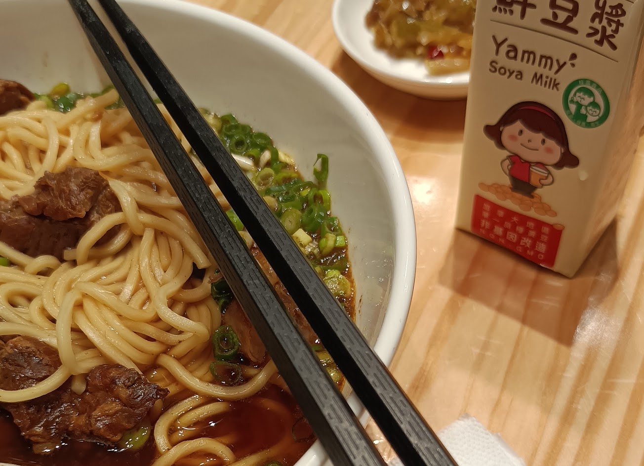 也因為帶一歲幼兒也吃不多,所以我未點兒童餐而是只有點我自己的個人套餐,店員上菜後又突然遞上鮮豆漿要請小朋友喝的,感謝店員如此友善對待小朋友。
