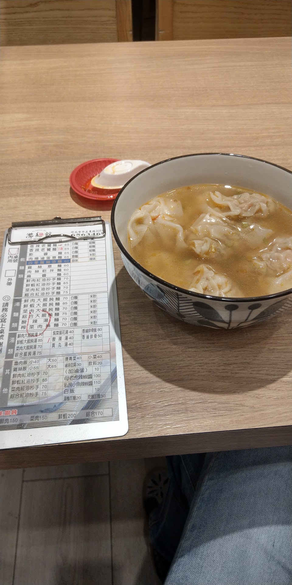 鮮蝦抄手很推 大大的抄手有兩支鮮蝦 算是非常有誠意在物價貴鬆鬆的竹北來說 算是非常不錯