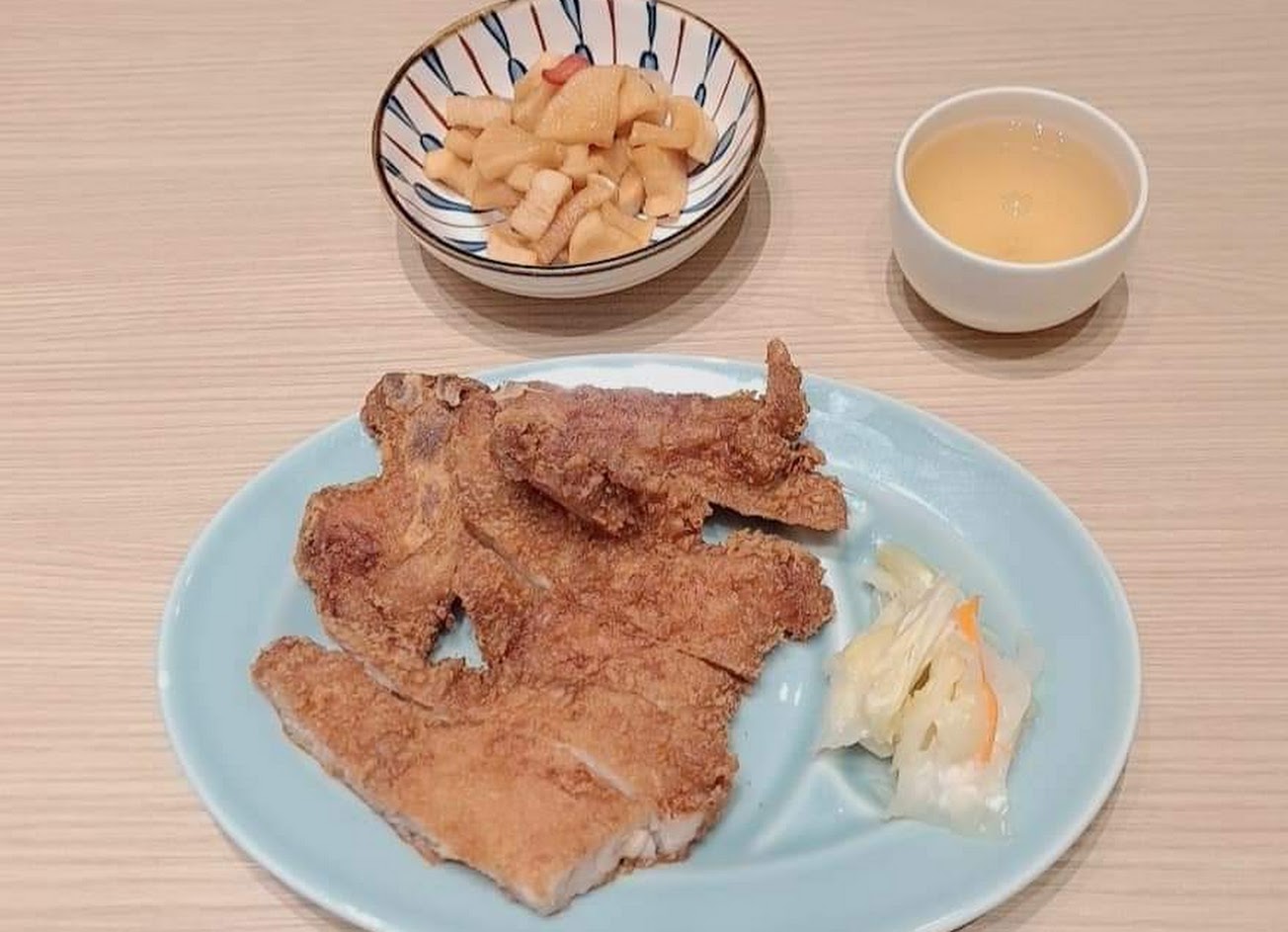 聽了路人推薦排骨有多好吃多好吃,超級特別,我們也點了一份排骨蛋炒飯。排骨很特別的是,他們用厚里肌肉下去炸,跟一般認知的蛋炒飯上的排骨很不一樣,也不是我們傳統排骨飯的那種排骨。創意十足,口感也不錯,但沒有到真的讓人特別驚艷,有點可惜。
