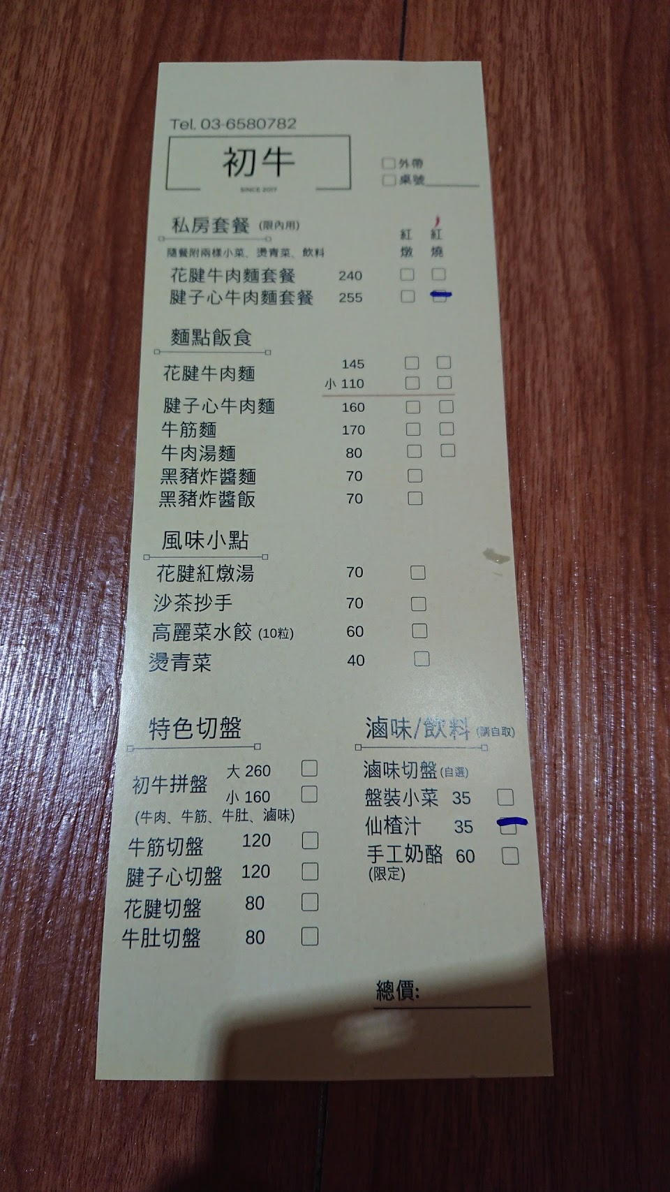 (圖為舊菜單 現在已經有漲價~)
