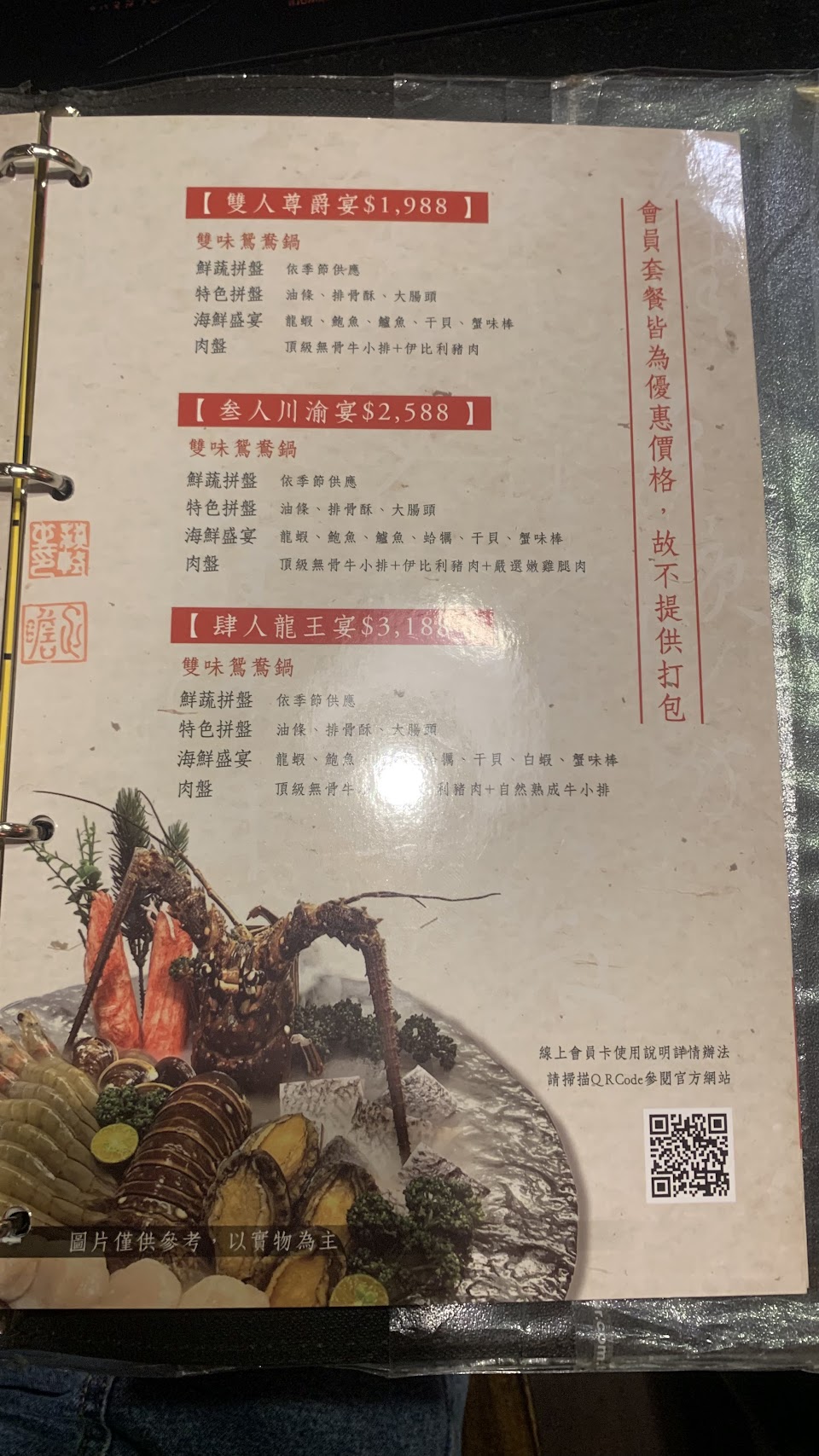 會員餐原本有海鮮 是要改幾次? 改成沒海鮮變相漲價有海鮮直接跳到2000多會員比較好騙是不是? 服務 內用 餐點類型 午餐 平均每人消費金額 $1,000-1,200
