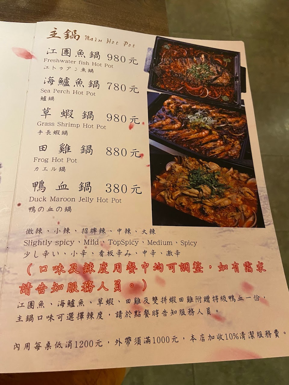 江團魚肉很嫩,小辣口味剛好,非常下飯,最後加湯煮火鍋的肉片與鴨血也很好吃。