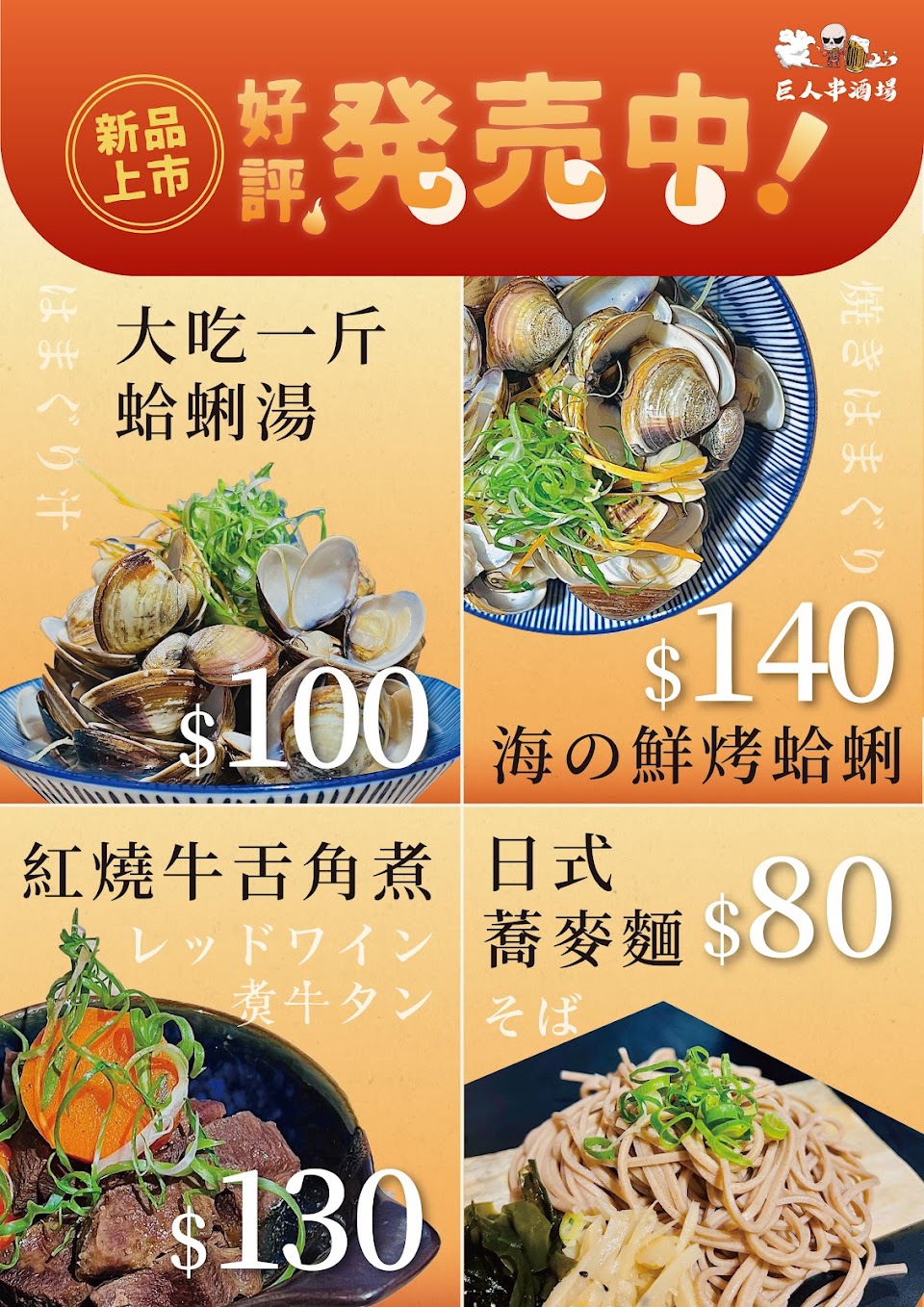 2024最新在地推薦餐廳的菜單_巨人串酒場 新竹串燒居酒屋的菜單、圖片