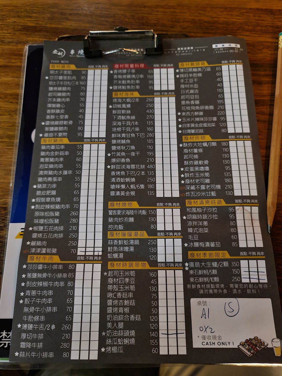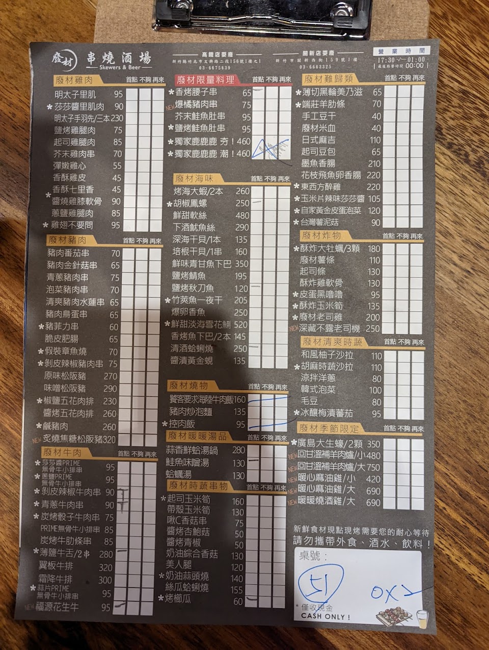 2024最新在地推薦餐廳的菜單_廢材串燒酒場Skewers & Beer 高鐵店的菜單、圖片