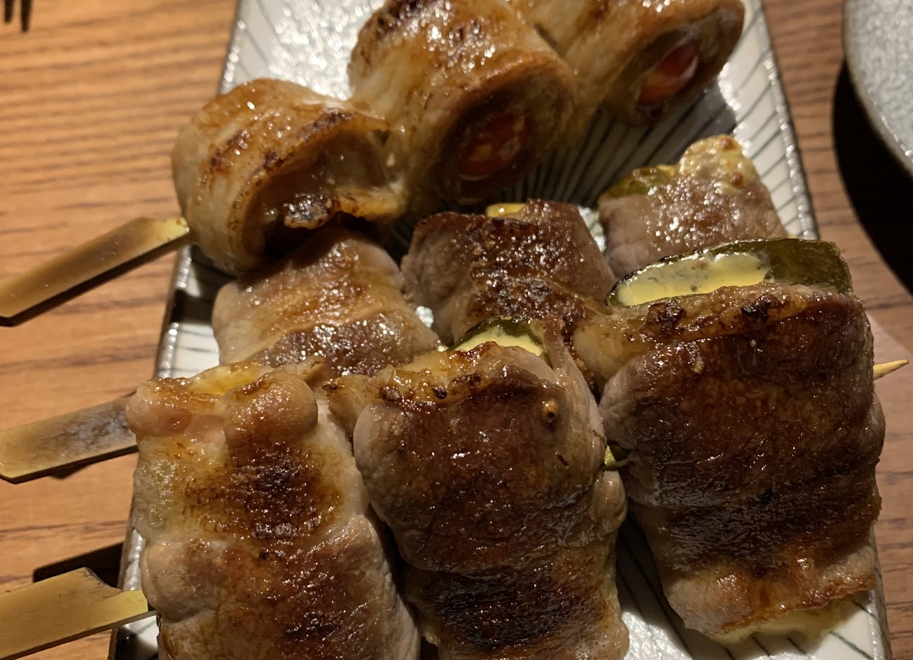 菜色只有關東煮跟串燒兩類而已。關東煮的湯頭較為清淡,所以整體吃起來沒什麼味道,附贈的醬料偏甜。串燒則是極端鹹,剝皮辣椒起司卷,起司少見的非常濃郁,搭配肉類的油脂,建議一定要搭配啤酒或關東煮湯解膩。整體份量比較大,走CP值路線,部分菜色沒有切塊,份量大不易入口。串燒應該是煮熟再燒烤,所以醃漬沒有入味,表面則是過鹹。 平均每人消費金額 $400-600 餐點:3 服務:4 氣氛:4