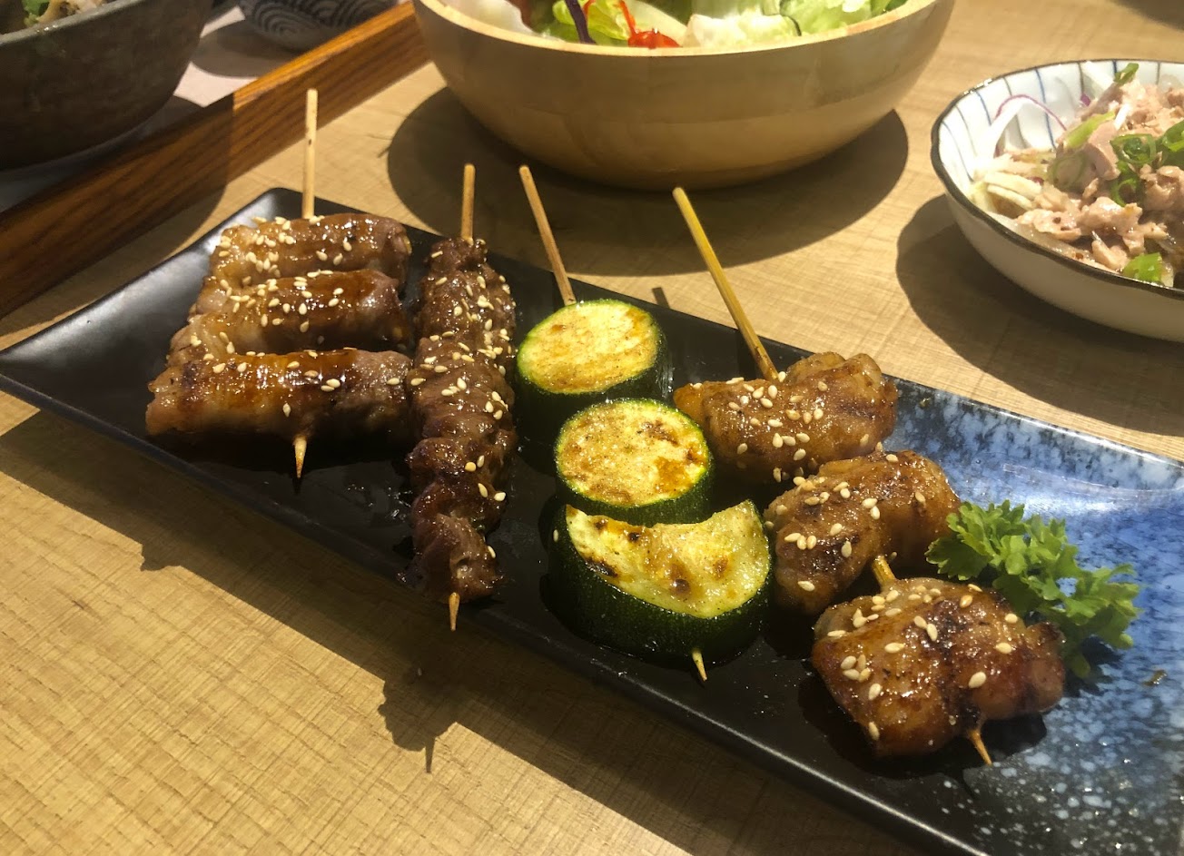 燒肉定食有茶碗蒸、沙拉、白飯、味增湯、醃蘿蔔、泡菜、甜點,對女生來說分量足夠,超好吃。串燒類也是喜歡的口味。
