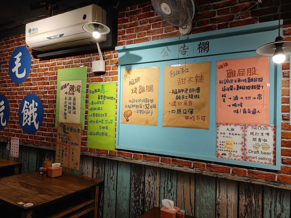 懷舊串燒店,從佈置就可以看出老闆的用心;令人驚豔的是這裡居然有賣各式各樣的果汁冰沙,若不知道點什麼的話建議可以點「招牌」料理喔。