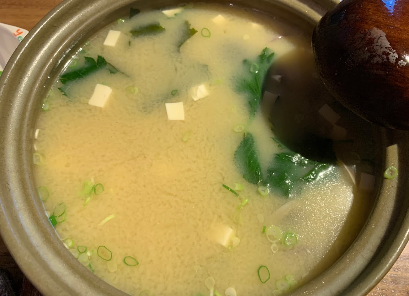 鮮魚味噌湯很令人驚艷,雖然要價150,也不大碗,但料非常多,豆腐、帶刺魚肉、海帶芽。 很有飽足感。