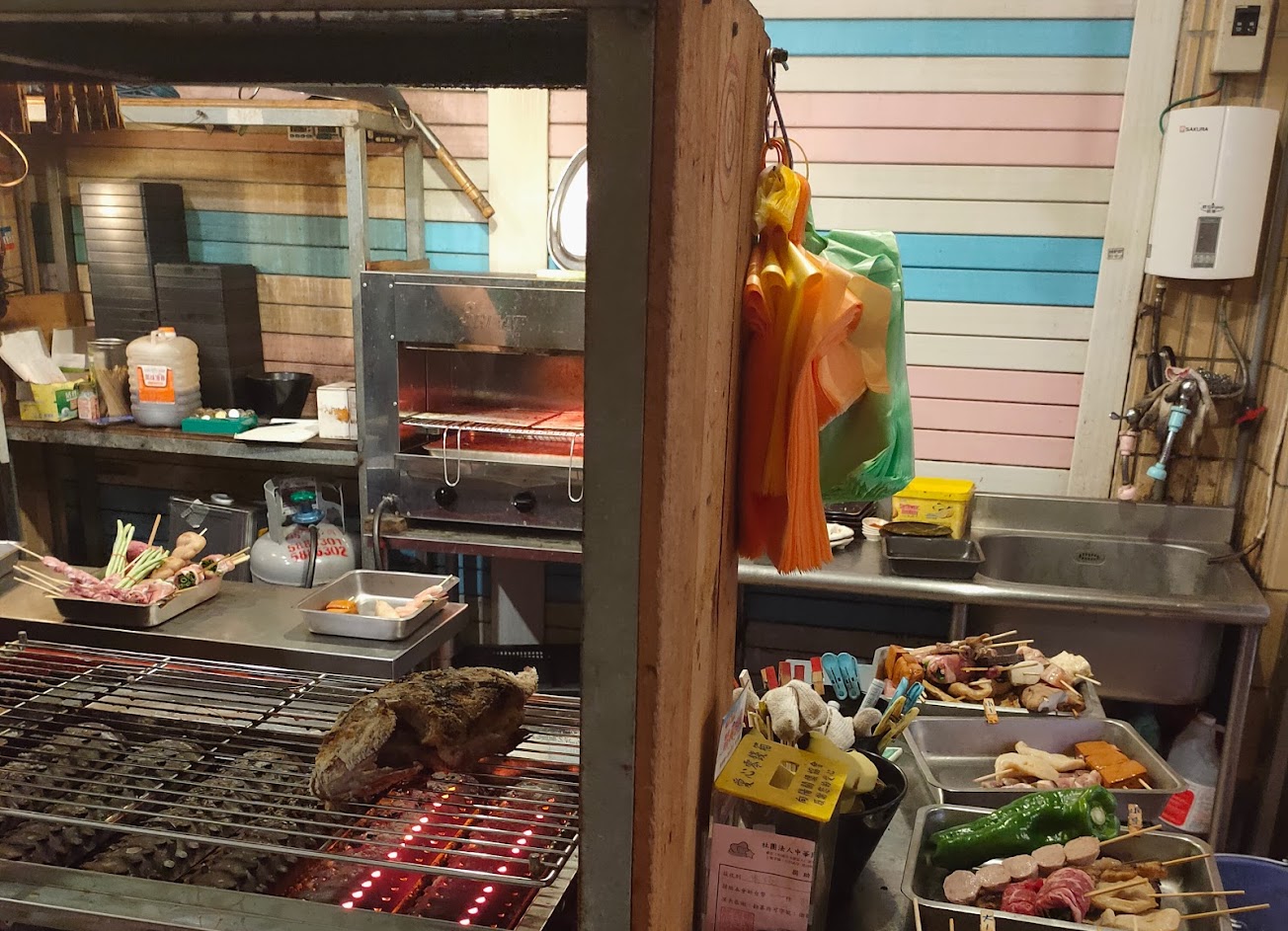 就在豆子埔公園對面,已經開好久了,聽朋友推薦說CP值很高,所以來試試,果然沒讓人失望。開車來的朋友,附近只有路邊停車格,找停車位就只能碰運氣,建議騎機車來和很多客人是直接叫熊貓的。 餐點是自行到冷藏櫃台夾取的,選擇種類沒有太多,但基本燒烤該有的都有,還推出生猛泰國蝦7隻400現撈現烤。冷藏櫃上方有價目表,但好像沒有每一樣價目都有,冰櫃的飲料也沒有寫價格,因為沒有菜單可以劃,建議可以直接問老闆。 烤工沒話說,烤肉醬也沒有加太多味素讓人吃完沒有負擔,每一樣都蠻好吃的,價格也超便宜,點了滿滿像山一大盤加上一瓶18天台啤才560,讓人吃完沒有負擔。 唯獨有兩個小缺點: 1. 烹調種類只有燒烤,沒有其他炸物或者熱炒可以多重搭配 2. 室內座位的環境真的有點差,可能為了冷氣但又無法禁止客人在裡面抽煙,導致一進去感覺自己在KTV包廂,對於不抽菸或對味道比較敏感的客人來說建議還是直接外帶或叫外送比較合適