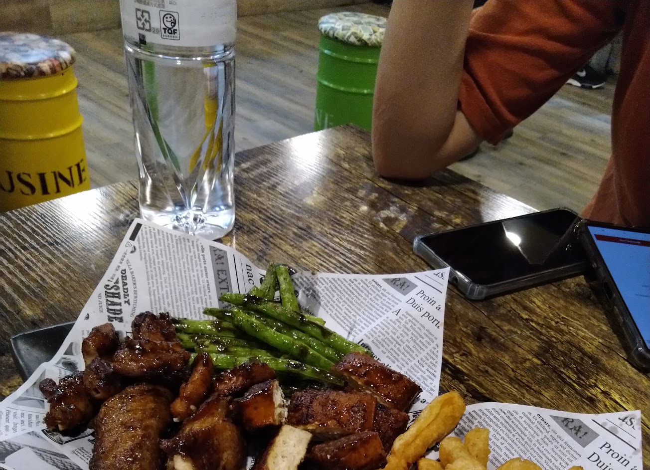 點了培根串,牛肉串,黑輪,甜不辣,米血,米腸,鹹酥雞,芋粿巧,兩瓶汽水。 與家人享受一次美好的晚餐時刻。