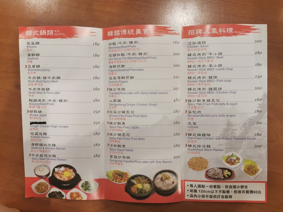 (單點菜單如附) 韓式烤肉好吃(有碳烤味),小菜和醬汁很棒,整體用餐環境氣氛舒服。