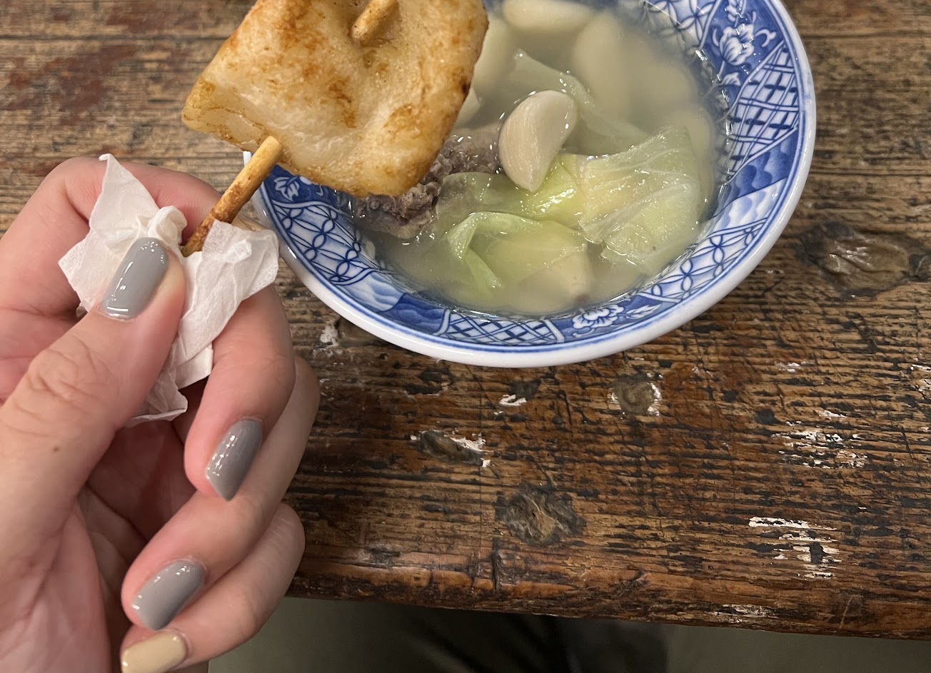 比起隔壁的烤肉店,這間烤店店員態度好太多了,很親切的帶入座,詳細的介紹餐點內容,烤物品項也多種,大推吃剝皮辣椒豬、豬包蔥、雞軟骨、照燒雞腿,溏心蛋豬嚐鮮可以點看看,搭配上四季肥腸,炸得恰到好處,再搭配四季豆及不知名的配料,很適合來杯冰啤酒,店內的酸梅湯喝起來比較像楊梅汁,搭配烤物炸物剛剛好去油解膩,冷冷的天點上一鍋蒜頭雞湯,蒜頭很多,鍋內還加了很多高麗菜跟菇類,自然清甜,適合聚餐的好所在