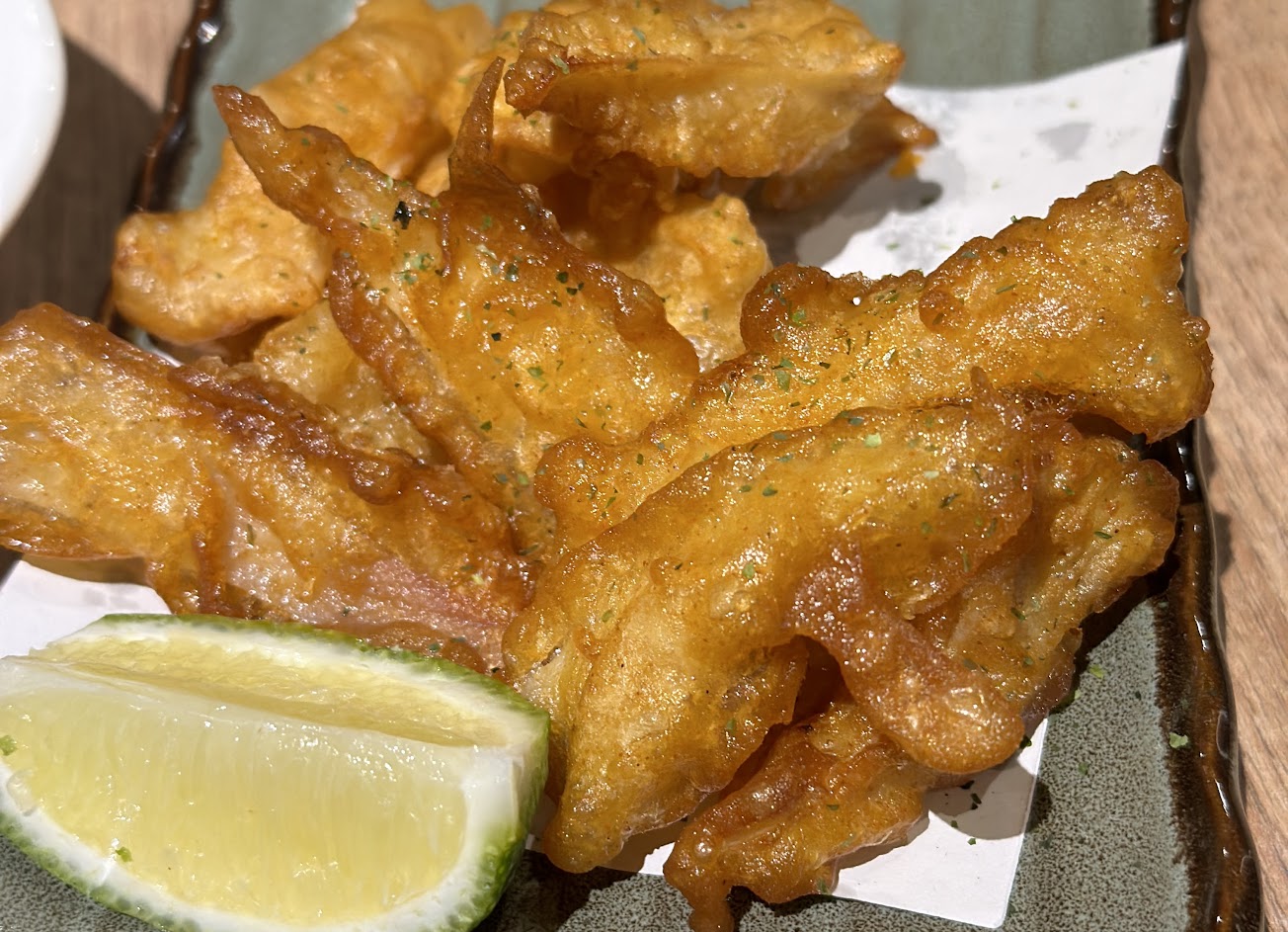 焦糖鮭魚壽司上面焦糖烤的脆口,豐富了壽司的層次,唐揚雞也是外脆內多汁,沾店家推薦的醬料是絕配
