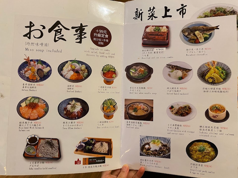 胡麻松阪豬 味增湯 碳烤牛排 生魚片定食 炸蝦天婦羅 烤魚