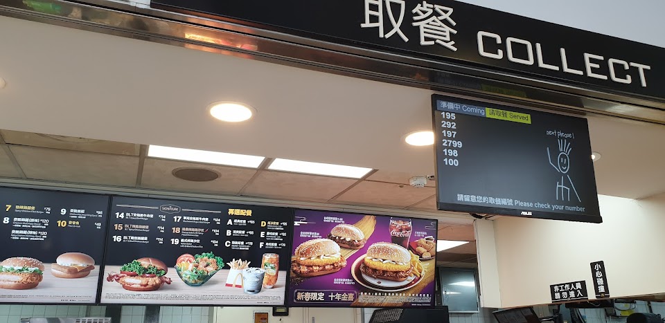 最後人工點餐,結帳後我們去隔壁漢堡王點餐,點完餐後叫老公回來麥當勞取餐,發現一直都沒有出現我們的號碼,等了10分鐘後面的人都領完了,去櫃檯問才發現過號,人員喊了二次,號碼被按掉消失在待取餐號碼中。??餐點還沒被取走啊!