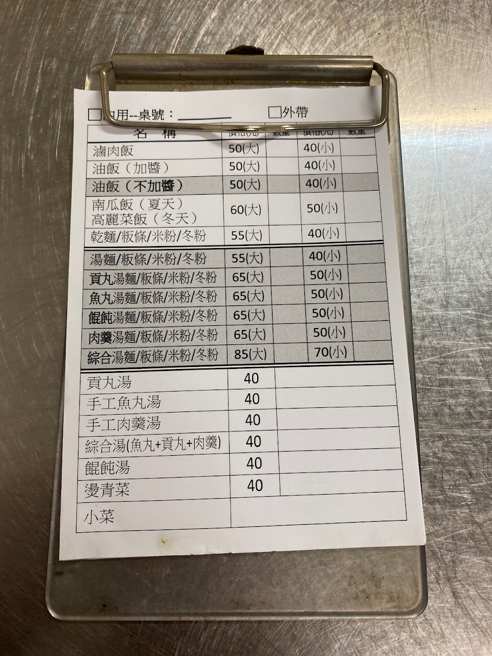 油飯好吃又便宜,大的50,不會太鹹,很香,QQ的不會硬也不會軟爛。板條是加蒜味肉燥,也很好吃又便宜(小的40元)