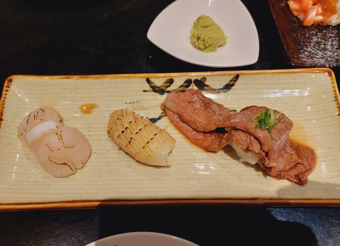 價格帶是貴的 不過食物是好吃的 推薦鰻魚蛋 海膽醬烤花枝 跟散壽司 其實水準還不錯 可惜點的貴貴的鵝肝牛肉壽司牛肉太難咬咬太久 有點失落
