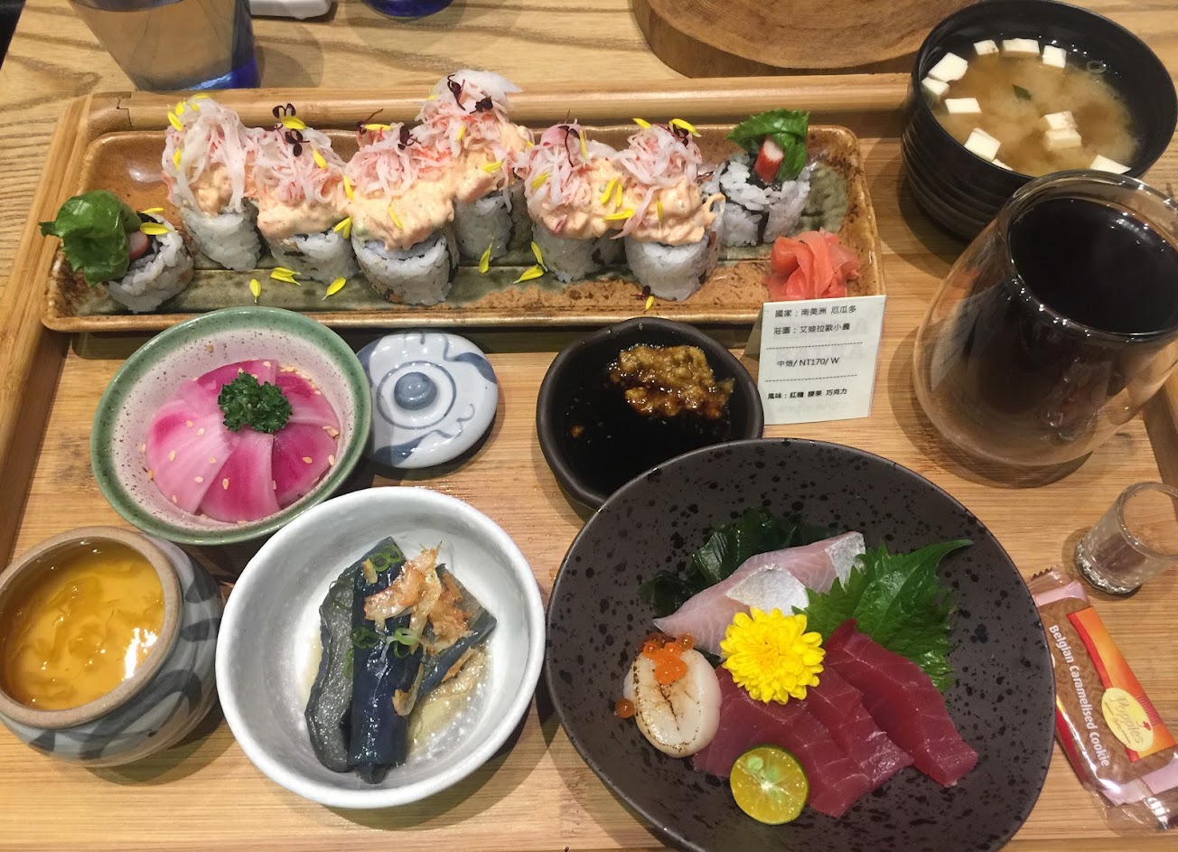 食材新鮮,烤魚很好吃,壽司很漂亮,調味特別