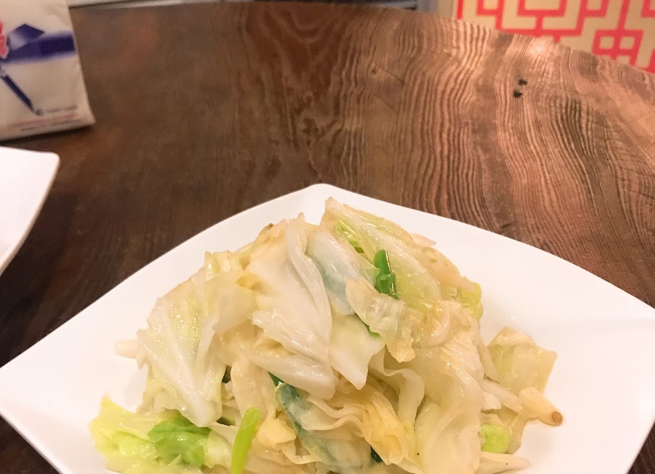 =>聽店員跟隔壁客人聊天得知是台灣本地的高麗菜不是進口的,不確定是否是高山高麗菜,不過吃起來還算脆口,炒的口味較為清淡。