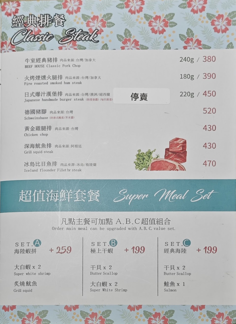 2024最新在地推薦餐廳的菜單_牛室炙燒牛排BEEFHOUSE 林口長庚店的菜單、圖片