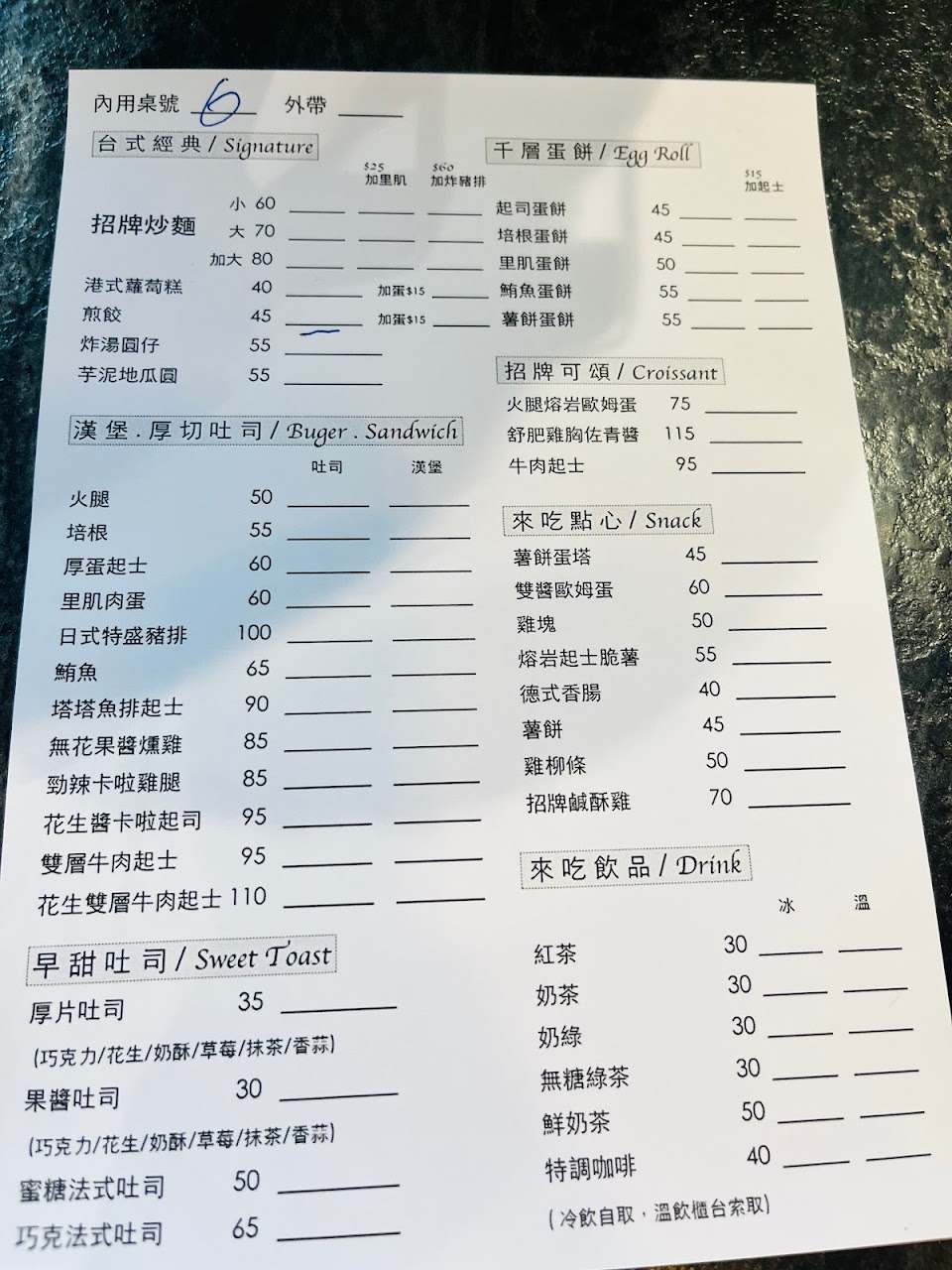 點餐方式很特別,一張白紙給你自己寫品項,非常考驗寫字功力阿??