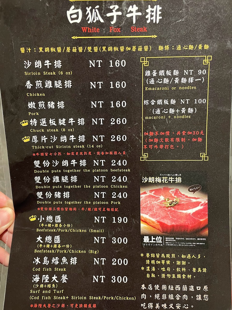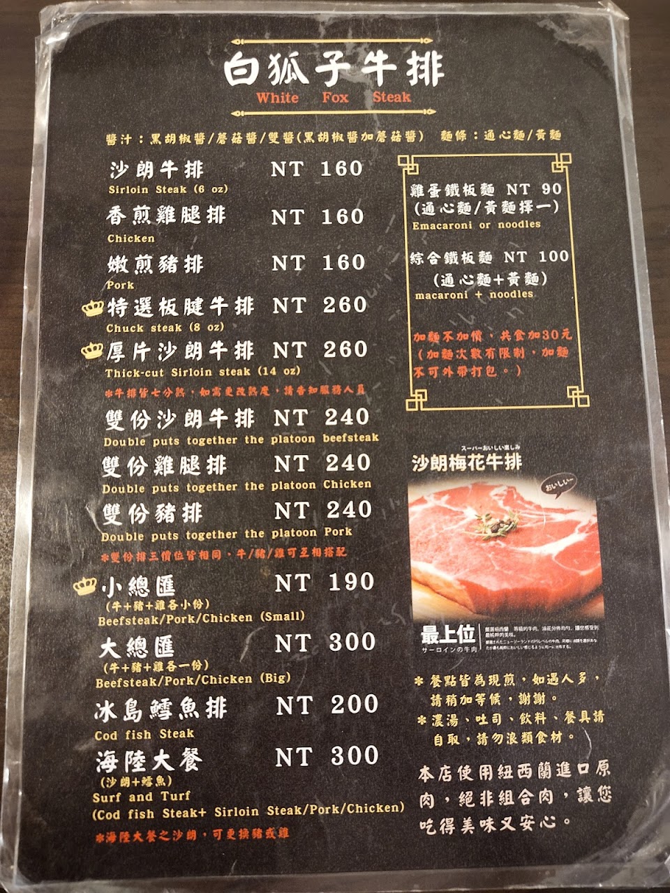 2024最新在地推薦餐廳的菜單_白狐子牛排的菜單、圖片