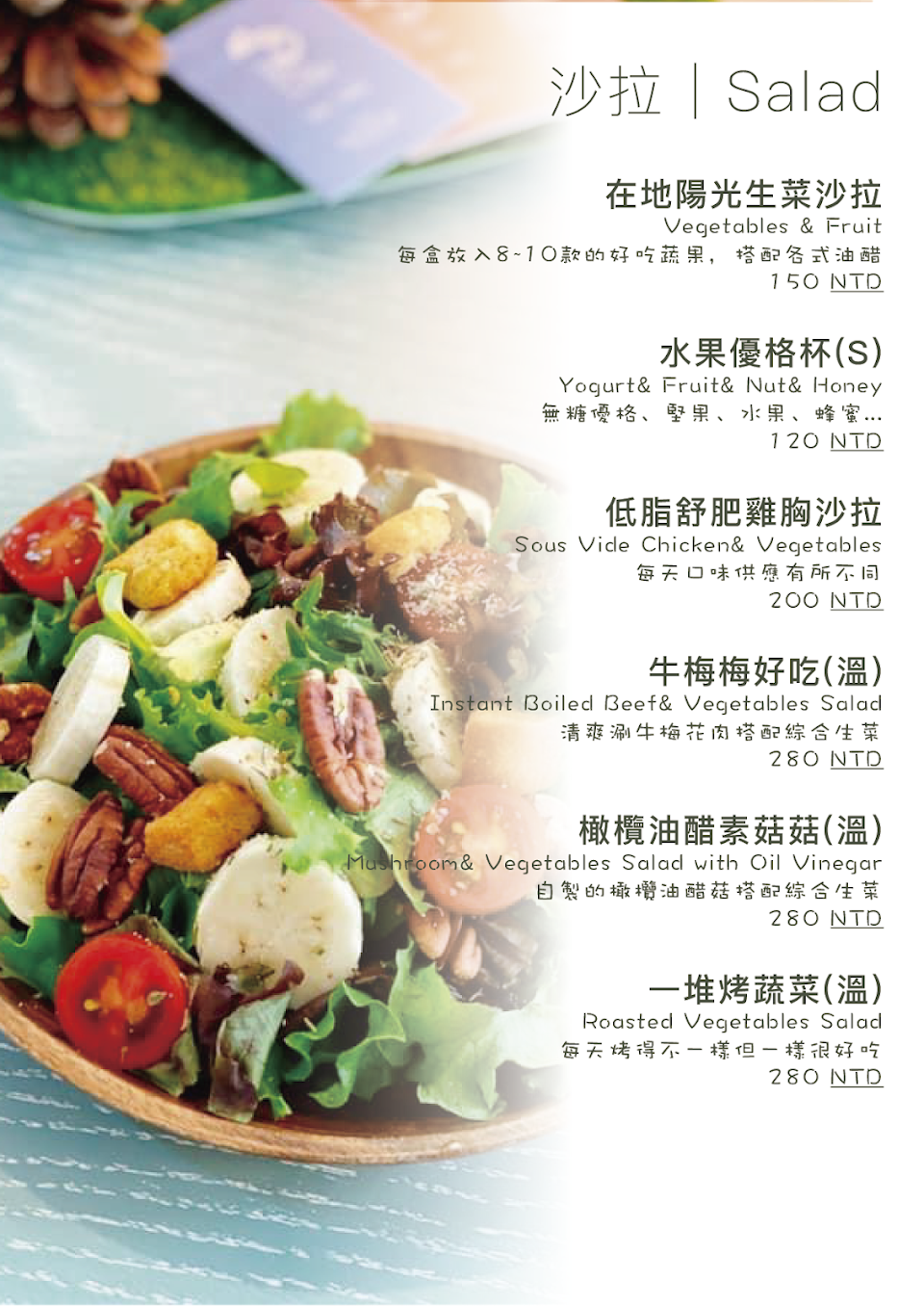 東西美味可口、氣氛溫馨、適合三五好友聚會或一個人來份沙拉+飲料過一個舒適的時光!!