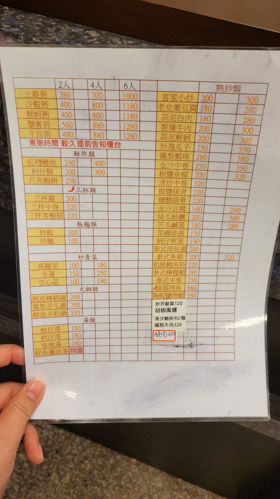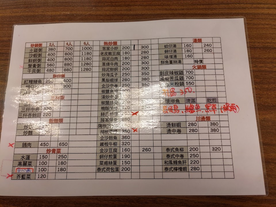 沙蝦粥 清炒水蓮 炒飯 炒海瓜子 客家小炒 金莎中卷 炒麵