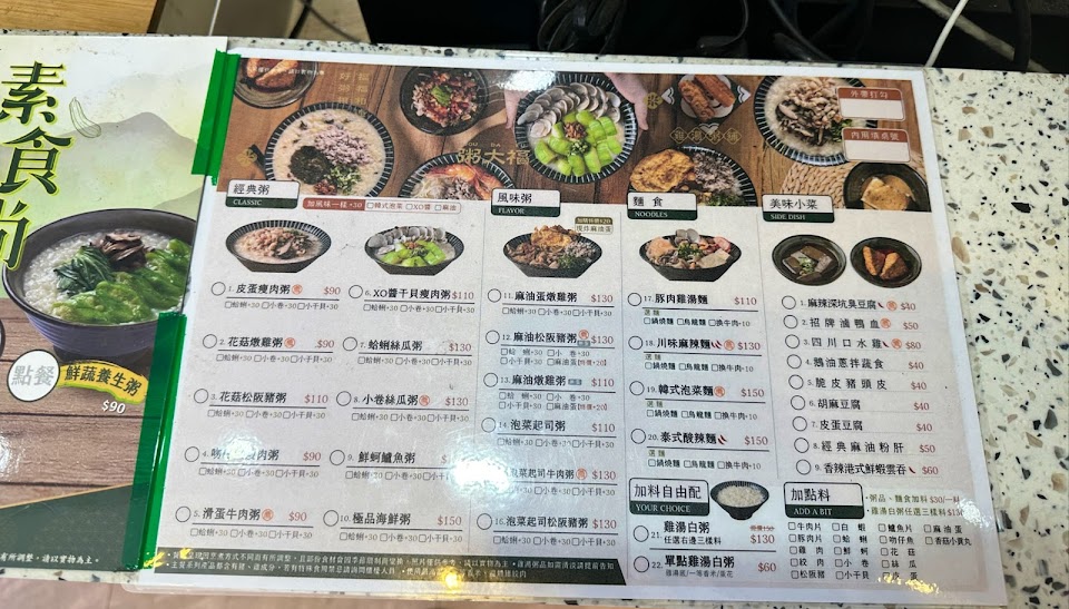 點餐掃 QRcode 後至櫃檯現金付款,種類除了粥品外亦有鍋燒意麵、烏龍麵可選擇。