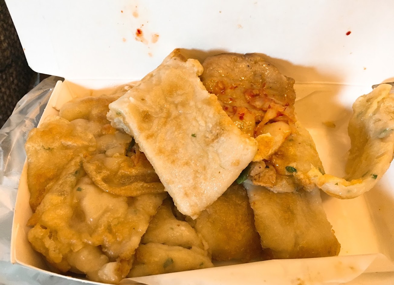 粉漿蛋餅口感特別、口味很多,外帶鮪魚起司和麻辣臭豆腐都非常好吃!!