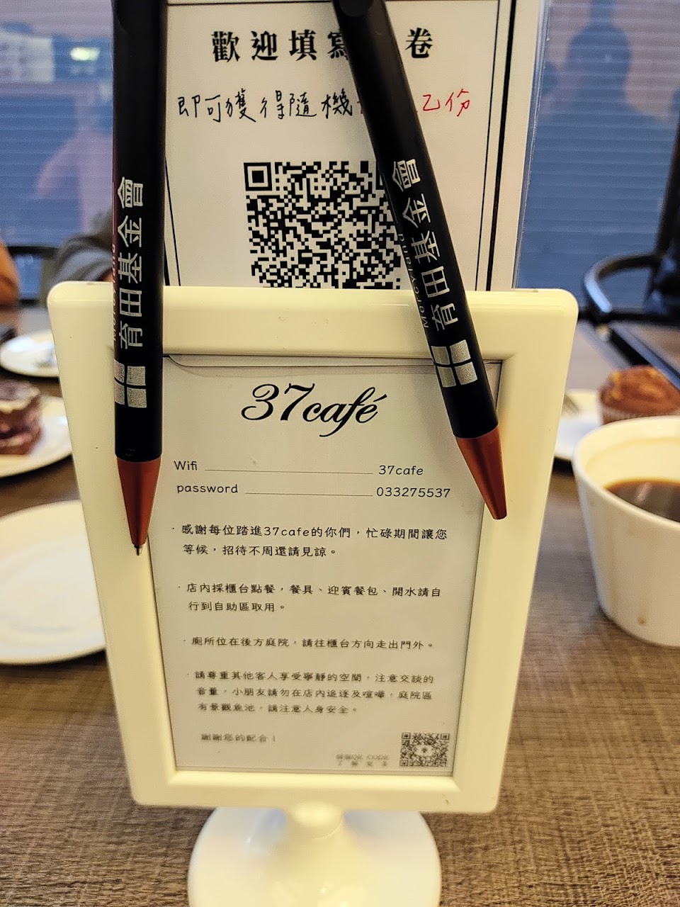 今天第一次到37,很喜歡環境很安靜舒服,有自助奶油餐包蠻香的,燻雞燉飯也很好吃?綜合甜點的部分乳酪球很驚艷 每個都不同口味很精緻,上層的手工餅乾有鹹起司跟巧克力,可惜桂圓蛋糕跟瑪德蓮比較普通。 …