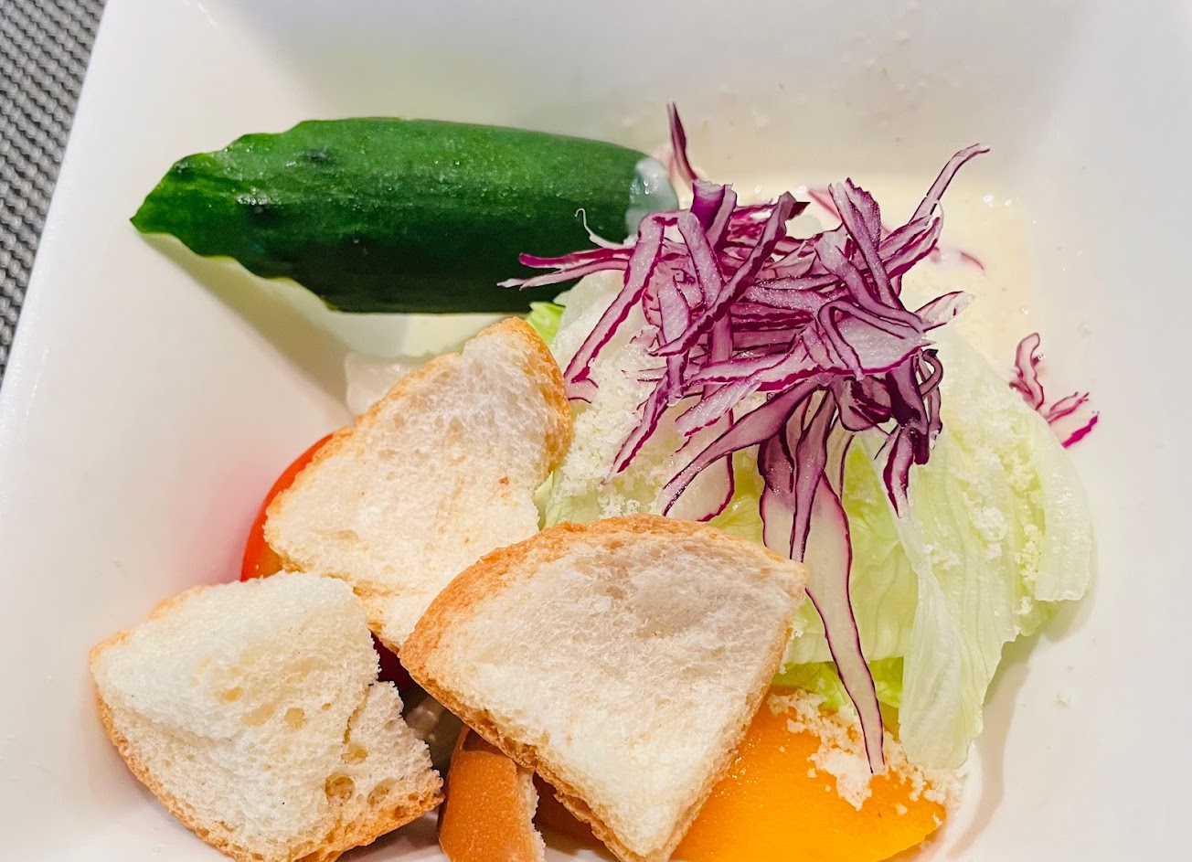 主餐上菜前,會有沙拉,麵包及湯品。