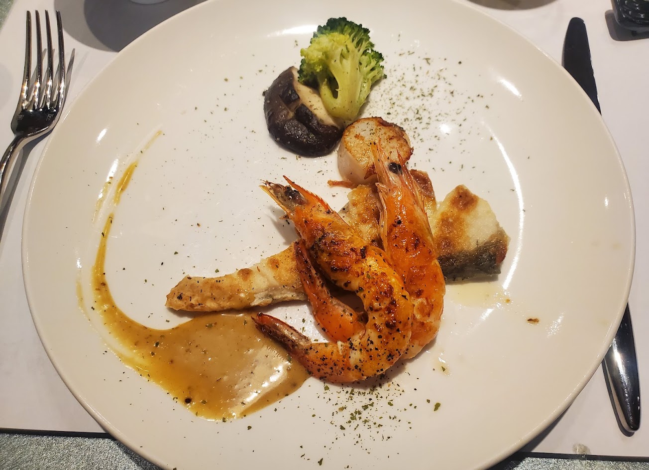 今天選用商業套餐-香酥雞排,湯品為洋蔥湯味道濃郁好喝,海鮮的部分時令鮮魚、草蝦、干貝搭配醬料十分爽口,主餐香酥雞排上有滿滿的香料(建議可以要一碗白飯)非常的下飯,甜品選擇奶酪算不錯吃,免費續杯的檸檬冰沙真的好喝(大概喝了10杯),服務生態度非常熱情親切,好餐廳!