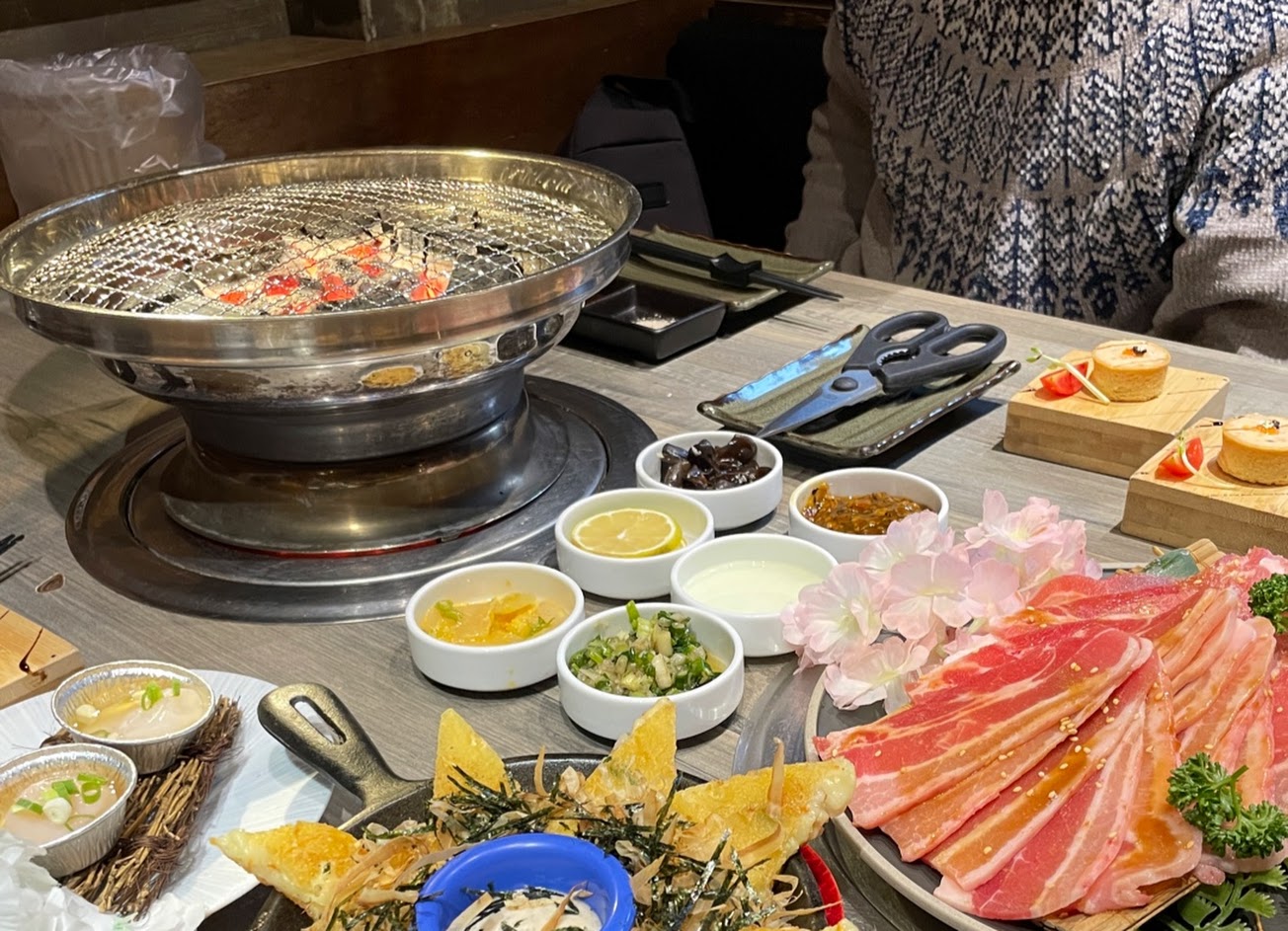 交通很方便有附小的免費停車場,裝潢可愛有有趣的打卡板可以用,我點櫻花和牛三盛,份量剛好,熟度三分不錯。 如果客人不多店家會代烤,我不太會烤很感謝店員,一開始有位女店員把肋間整個烤的很多燒焦,搭配的鳳梨也焦了,我不懂燒肉但覺得這樣吃好像會吃到很多炭化物,女店員剪掉一些解釋是肉油脂豐富滴下去導致火太大,我問能不能剪乾淨一點她回:這樣就沒什麼肉可以吃了。呃所以燒焦很多嘛!幸好跟另一位男店員反應後,補了一份肉,後來原本的女店員過來說後面換男店員烤,但男店員經過時說未被女店員告知⋯? 男店員非常細心,烤網有碳化會主動更換,烤的速度也會注意客人進食速度。 服務 內用 餐點類型 午餐 平均每人消費金額 $1,600-1,800