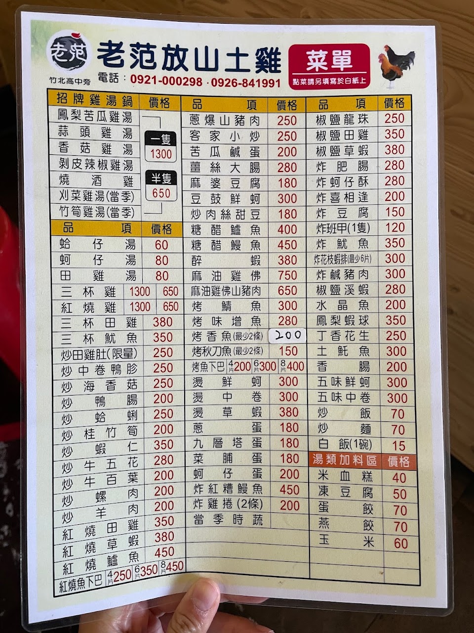 2024最新在地推薦餐廳的菜單_老范放山土雞的菜單、圖片
