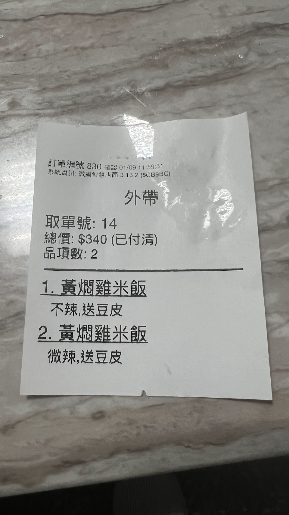 今天點黃燜雞米飯 ,口味很好,非常下飯,會再光顧。
