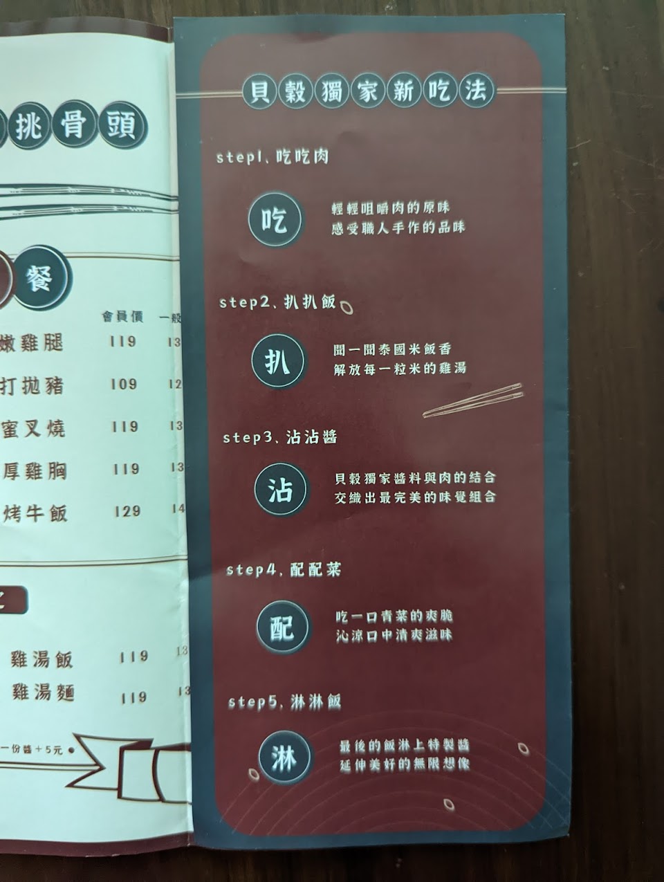 餐點: 個人非常喜歡貝穀的泰式脆皮雞腿、還有貴妃雞腿, 比較有特色的是貝穀的米飯, 跟外面不同的地方是他們是用泰國米跟雞湯一起下去煮, 如果點貴妃雞腿有四種醬可以選, 建議選口水醬, 吃起來有酸辣感還有麻香味, 淋到雞飯上也非常下飯。