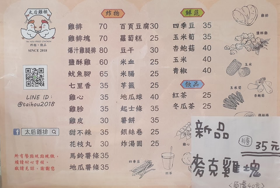 2024最新在地推薦餐廳的菜單_太后雞排的菜單、圖片