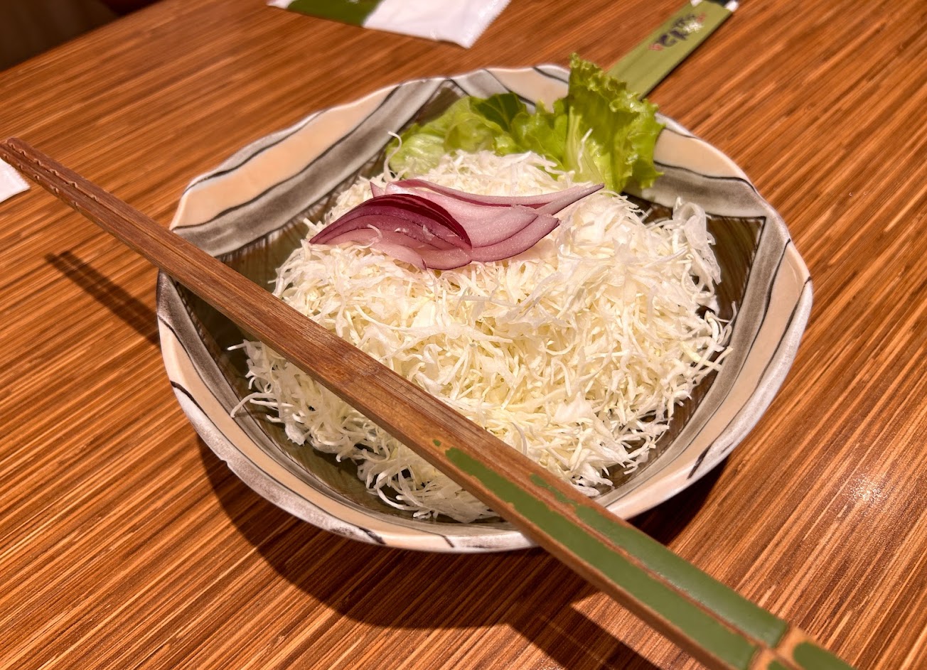 高麗菜絲可以一直續 很新鮮不會有奇怪的生菜味 配備和風醬哇哩勒大吃特吃